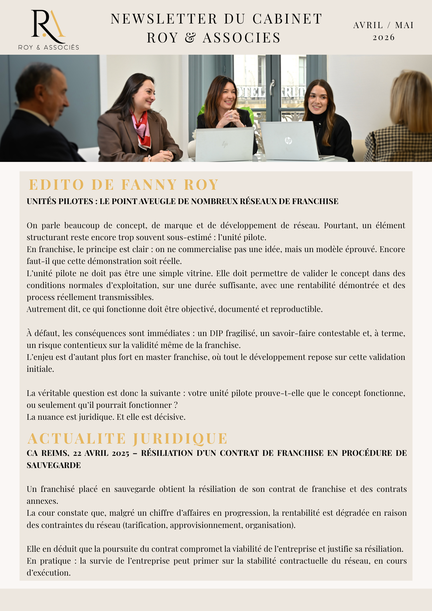 Nous sommes ravis de partager avec vous la newsletter d’avril / mai 2026 du cabinet ROY & ASSOCIÉS.